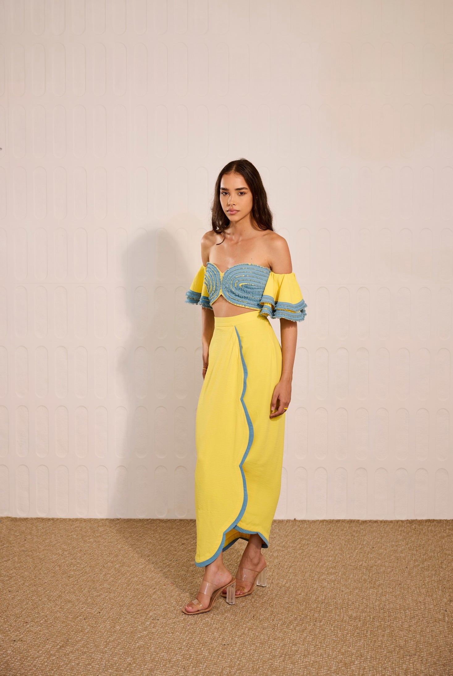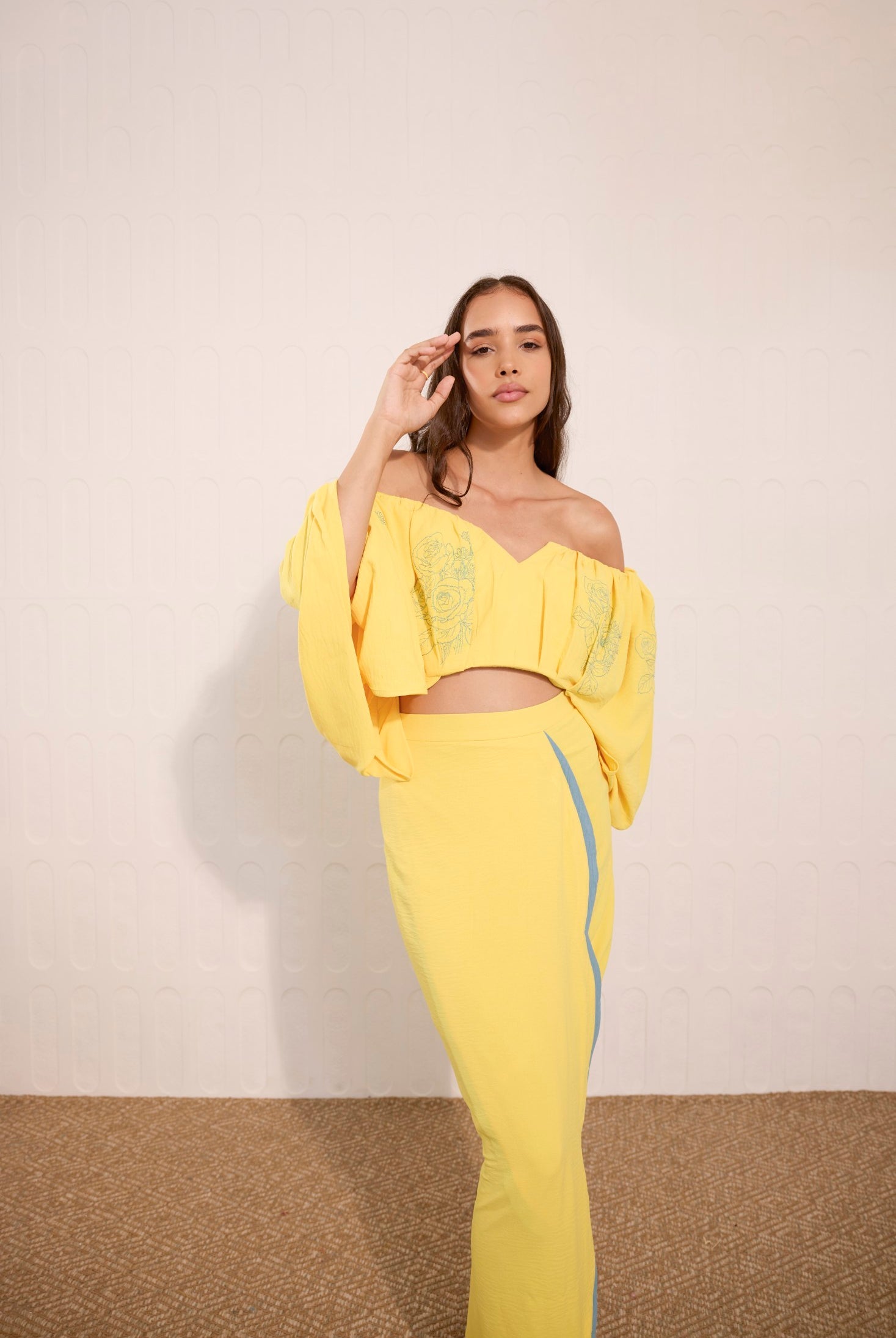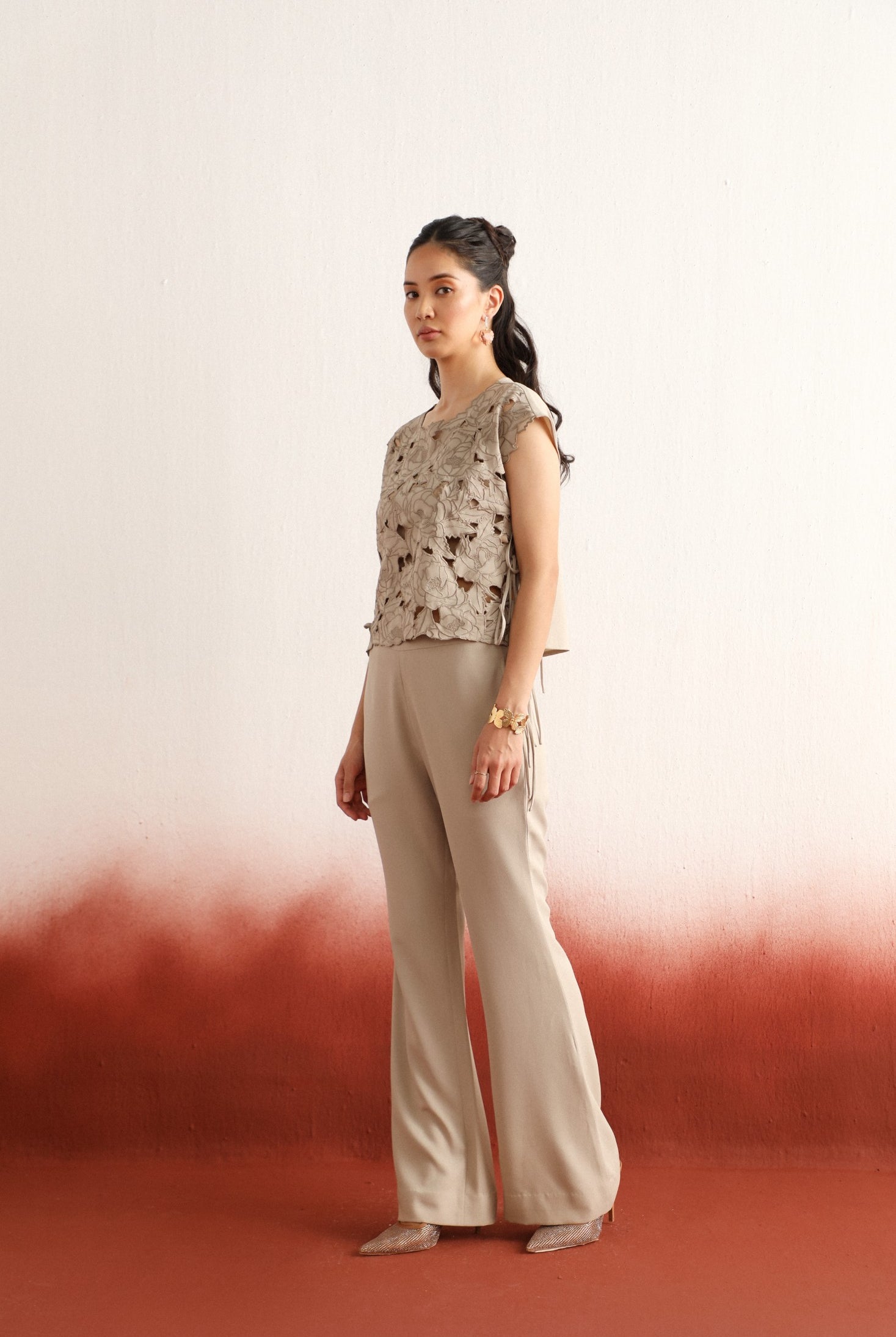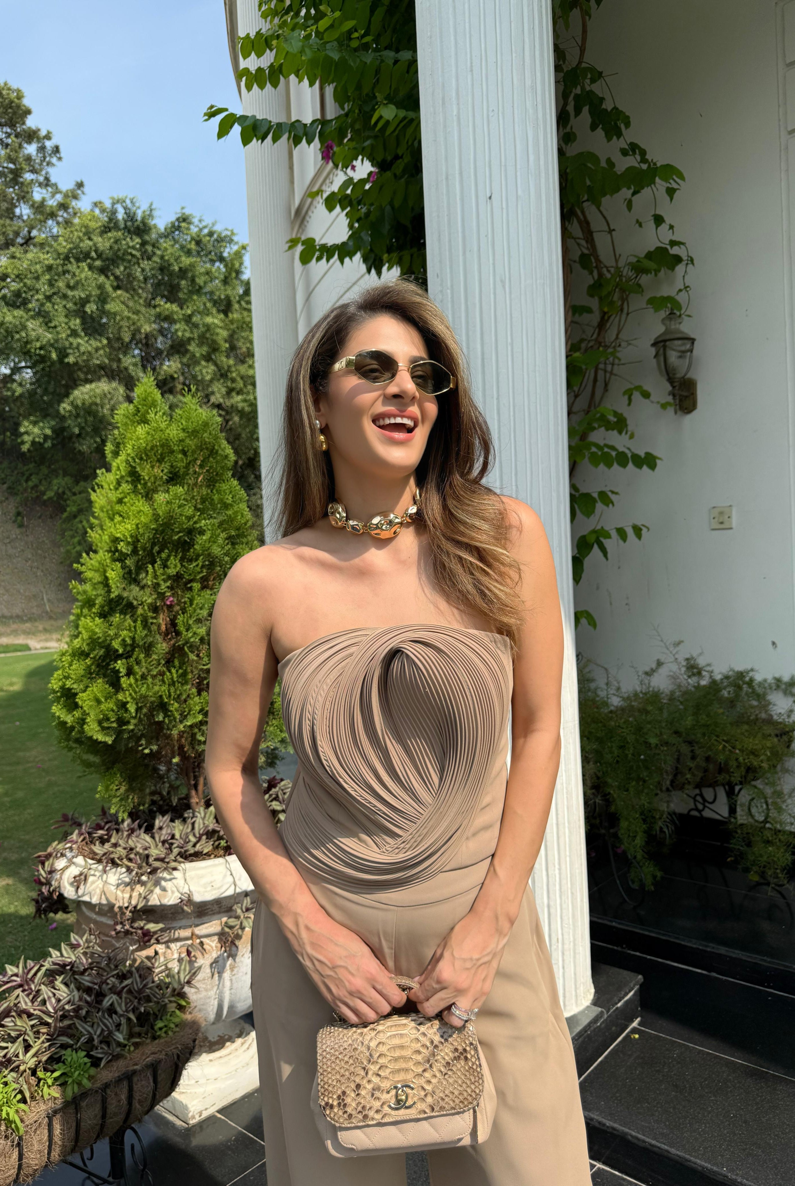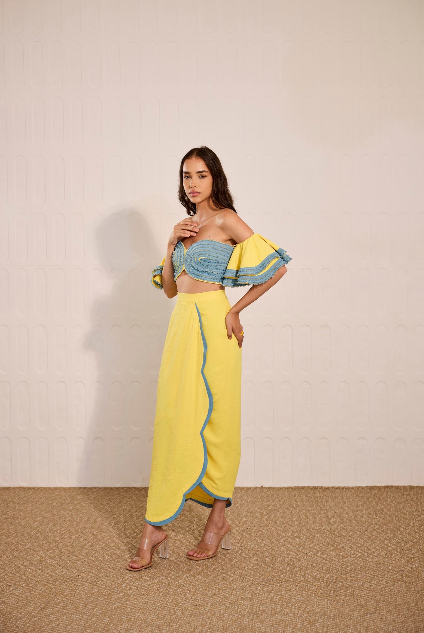 Ethereal and statement-making, this blue ensemble features a delicately jaal-embroidered cape paired with embroidered inner and flowing chiffon sharara. The soft textures and intricate detailing create a graceful silhouette, perfect for festive celebrations, evening events, or modern traditional occasions.