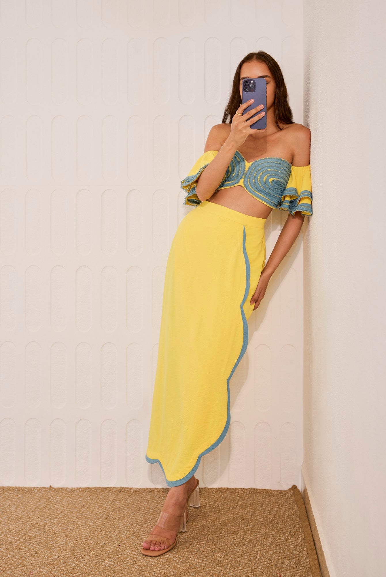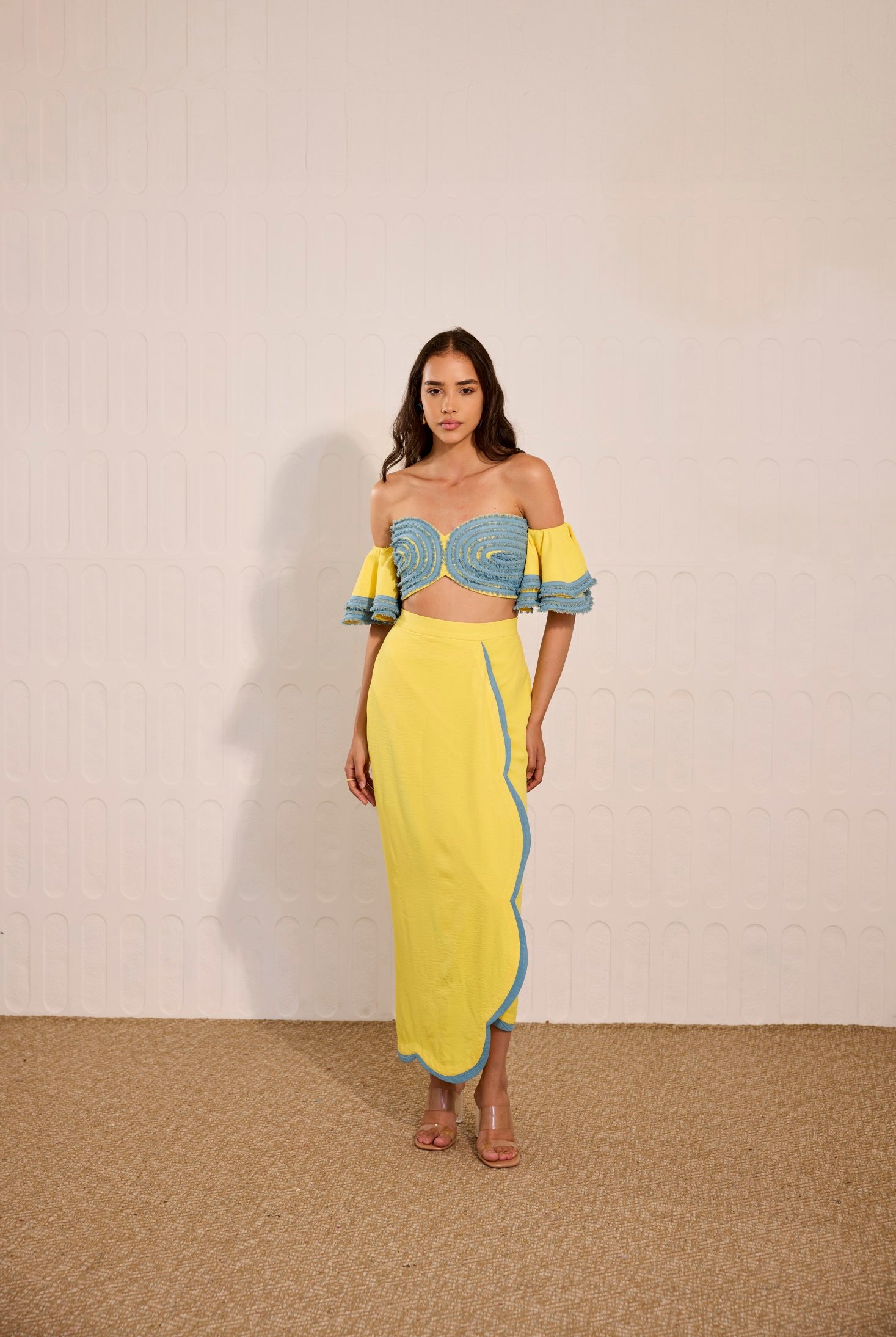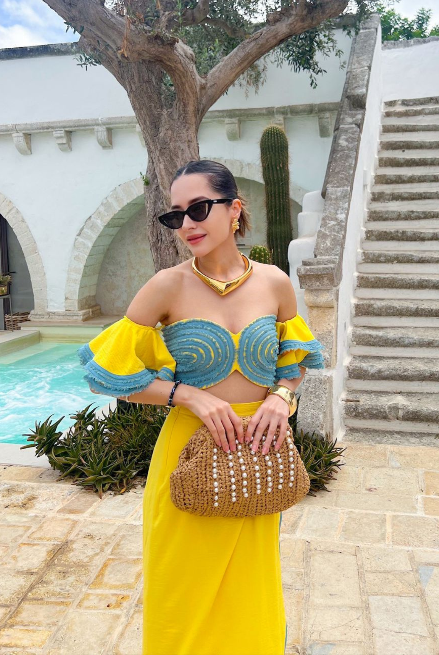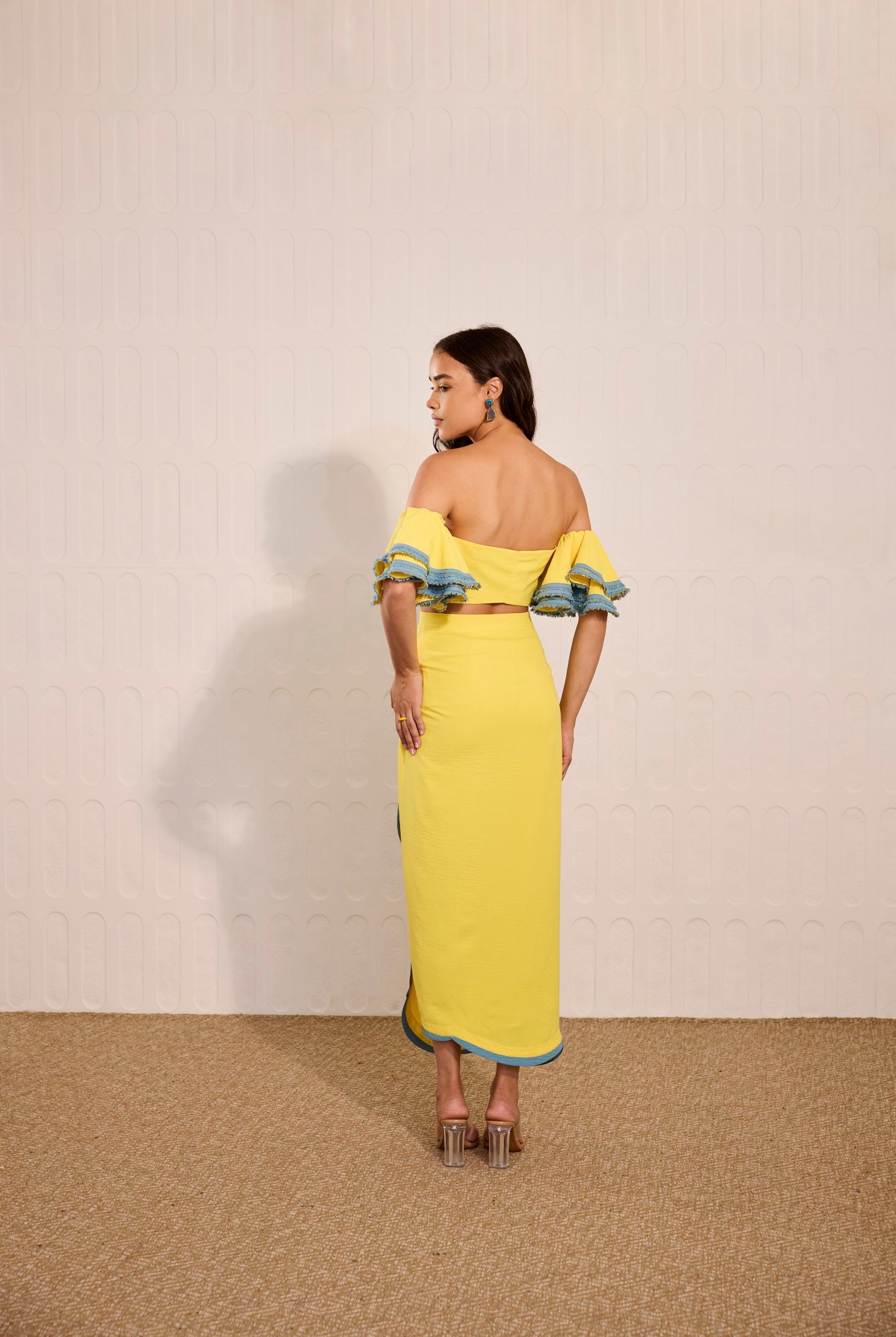 Ethereal and statement-making, this blue ensemble features a delicately jaal-embroidered cape paired with embroidered inner and flowing chiffon sharara. The soft textures and intricate detailing create a graceful silhouette, perfect for festive celebrations, evening events, or modern traditional occasions.