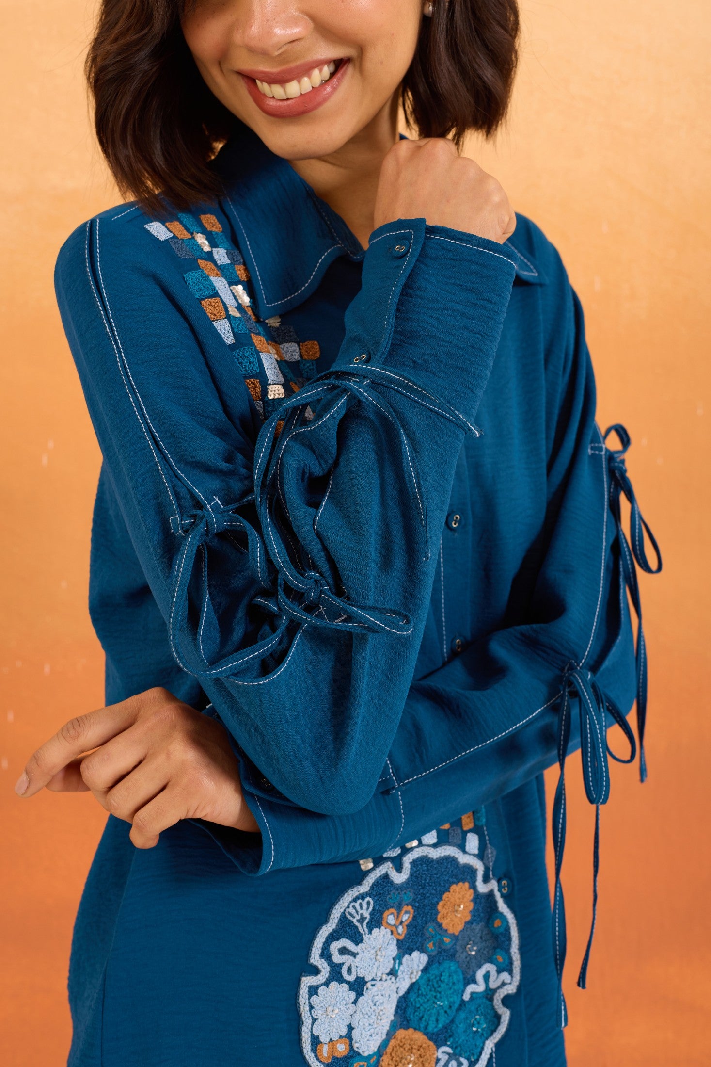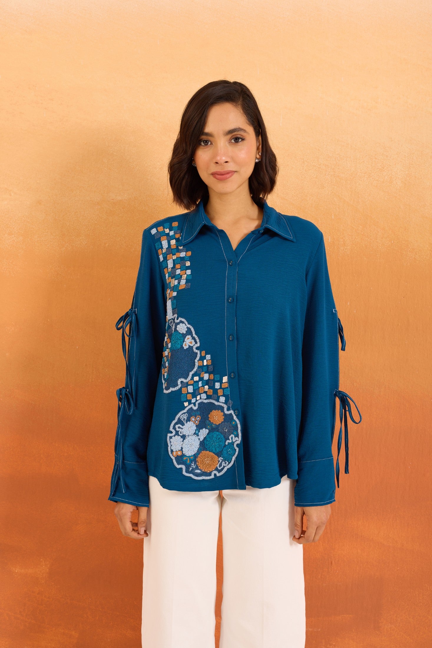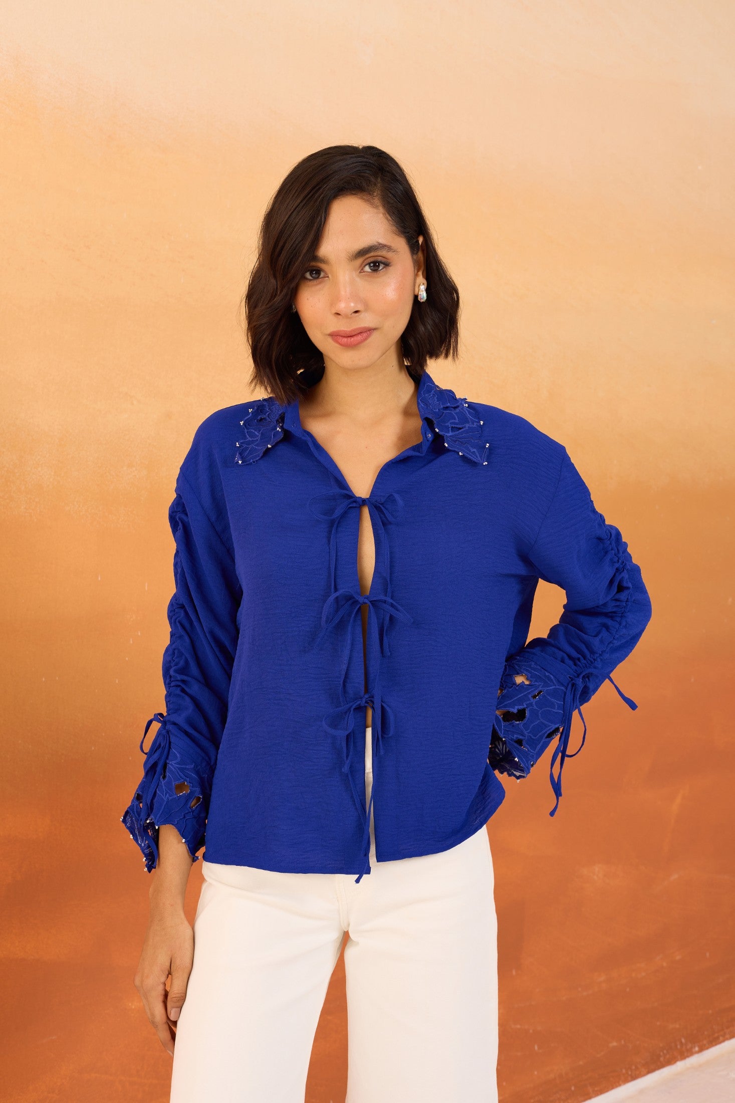 Navy Cutwork Shirt