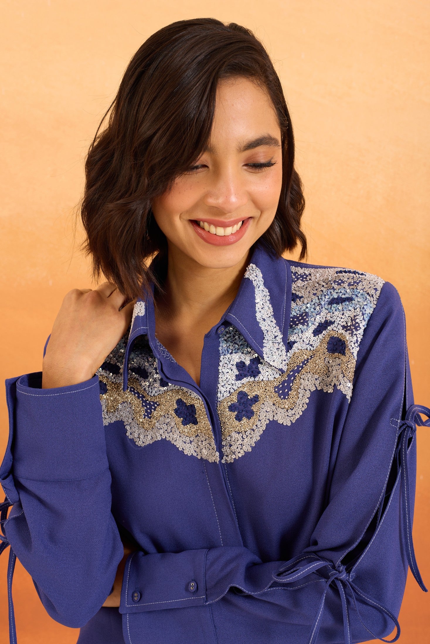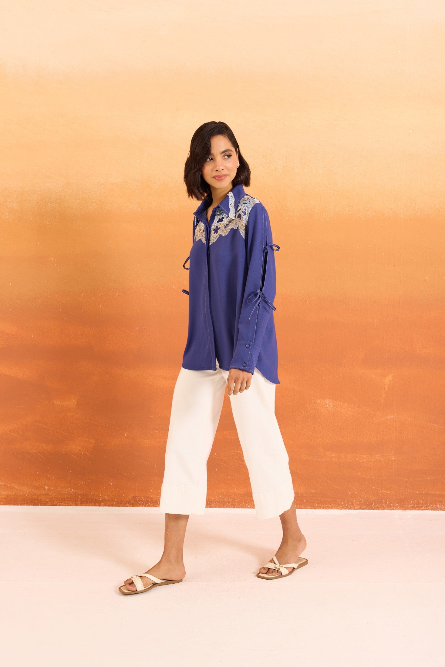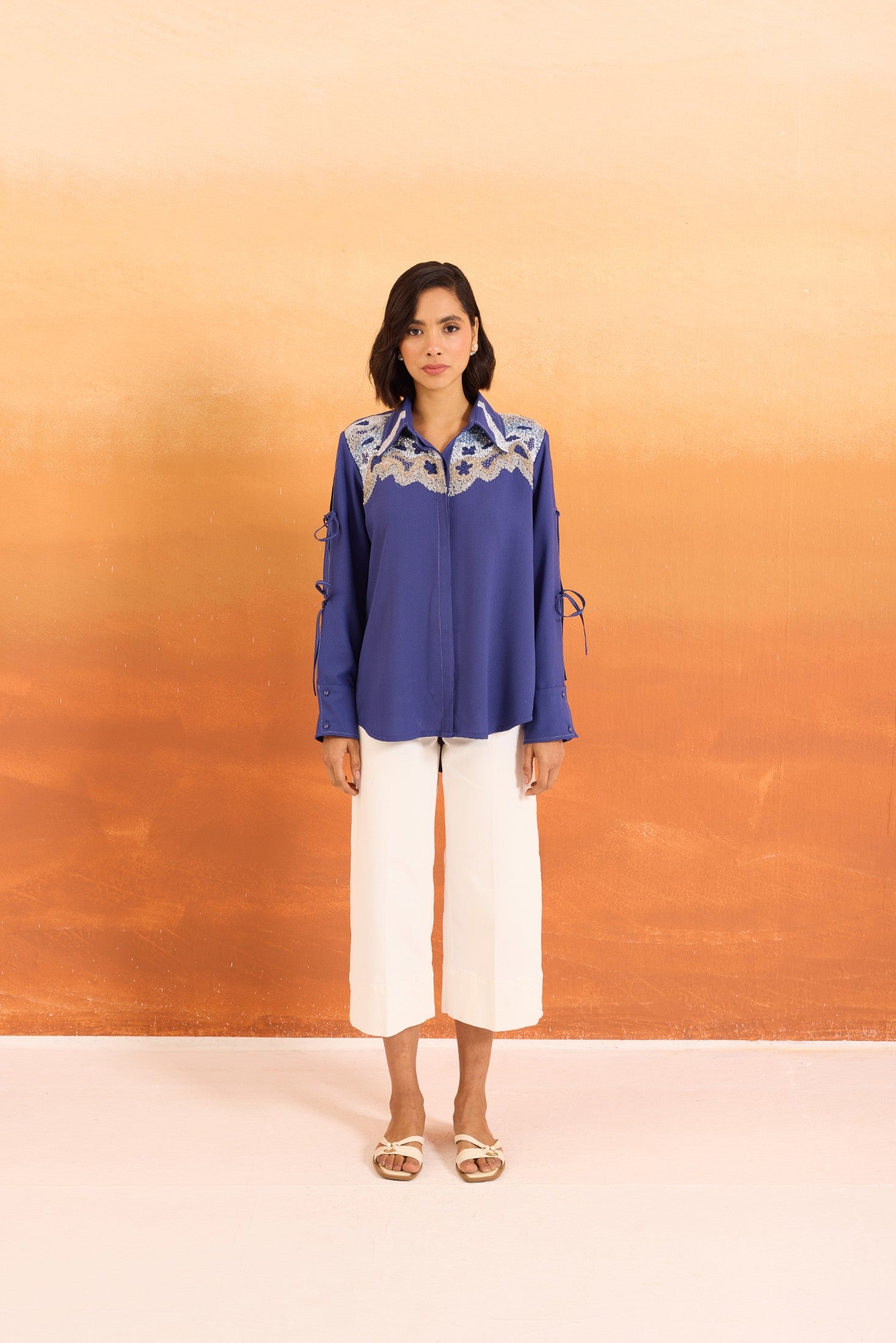Navy Cutwork Shirt