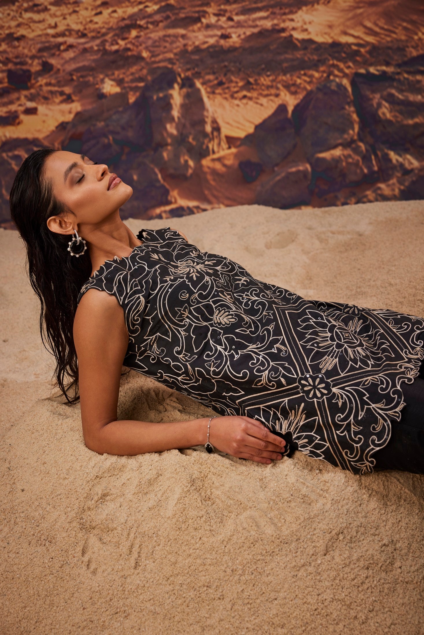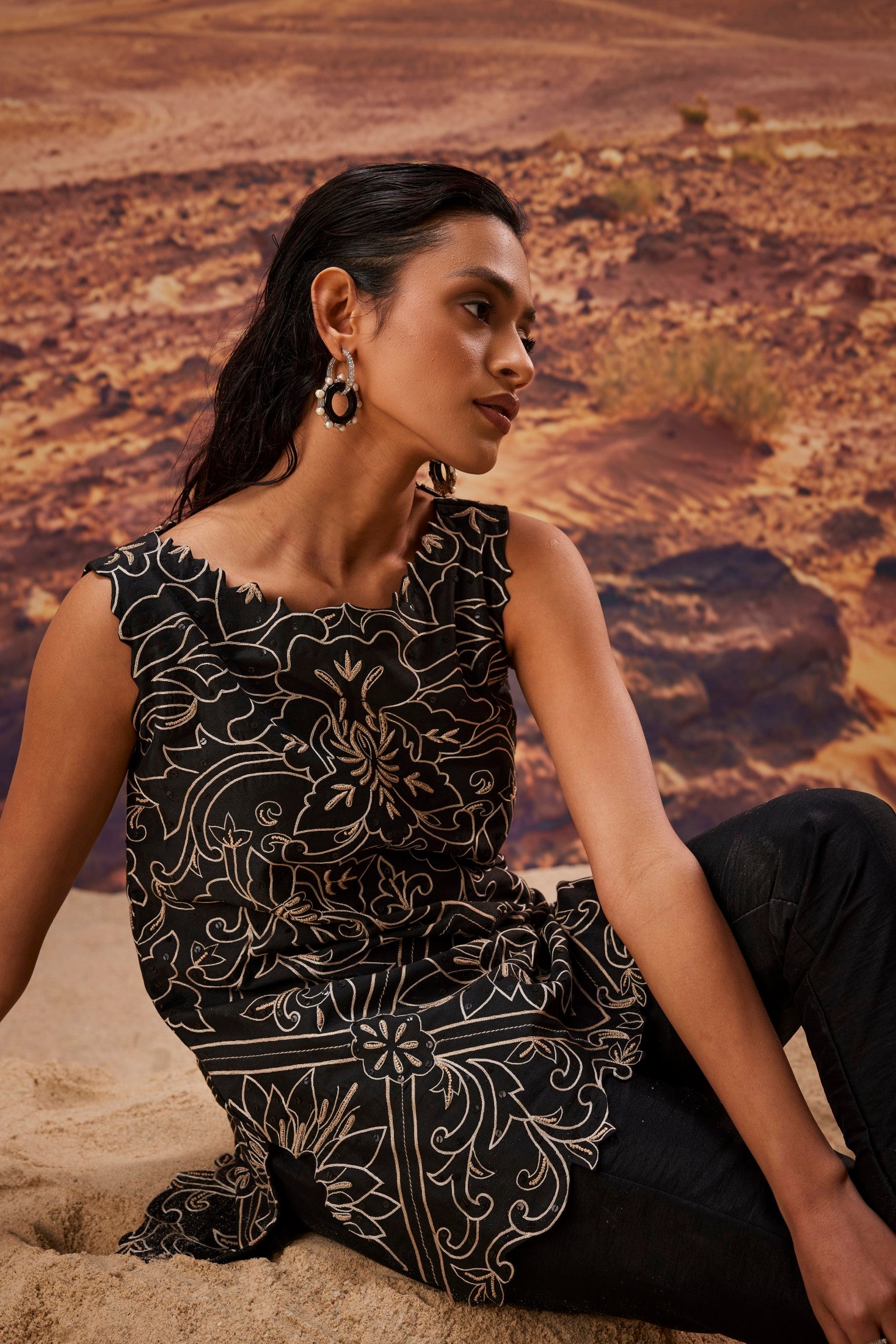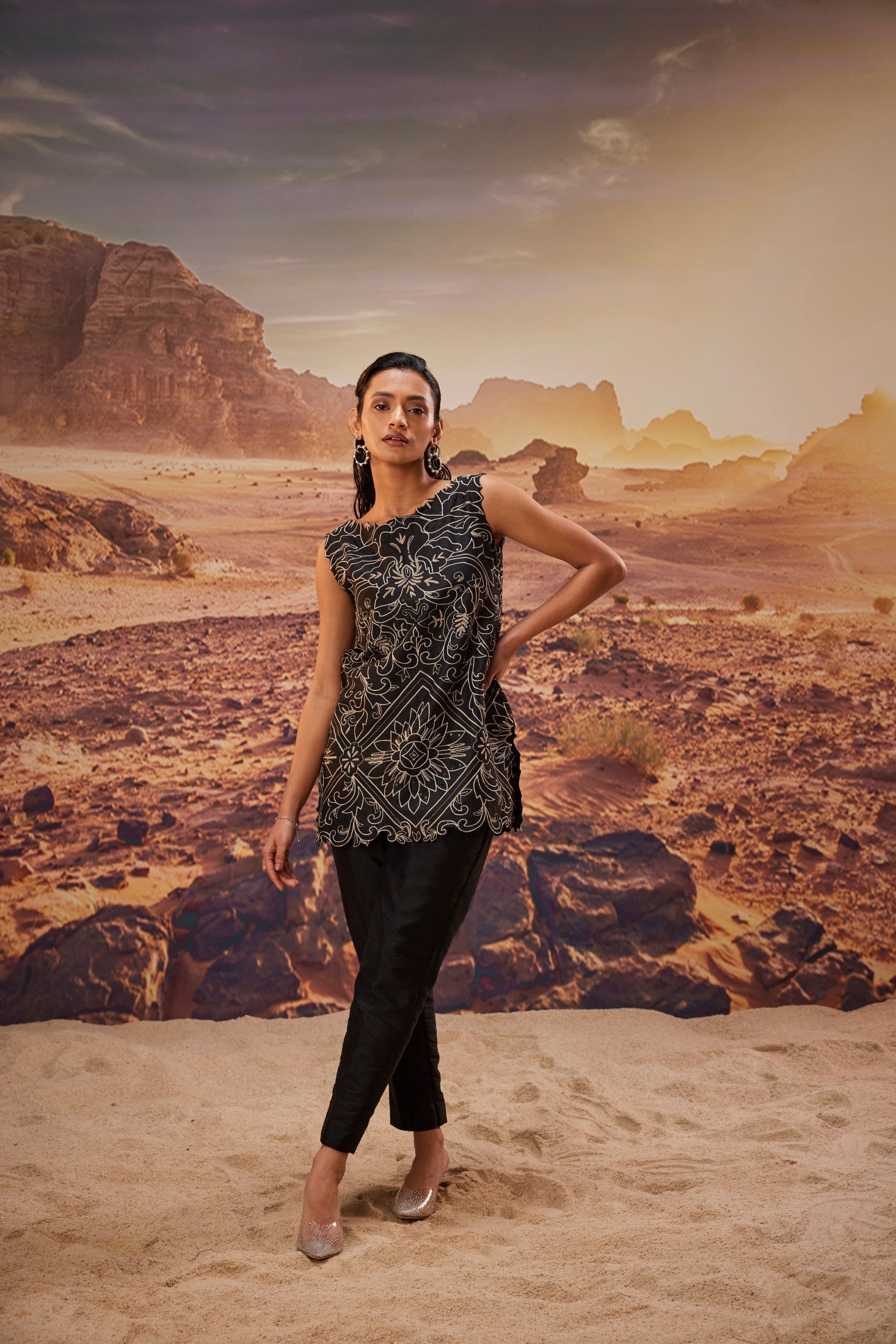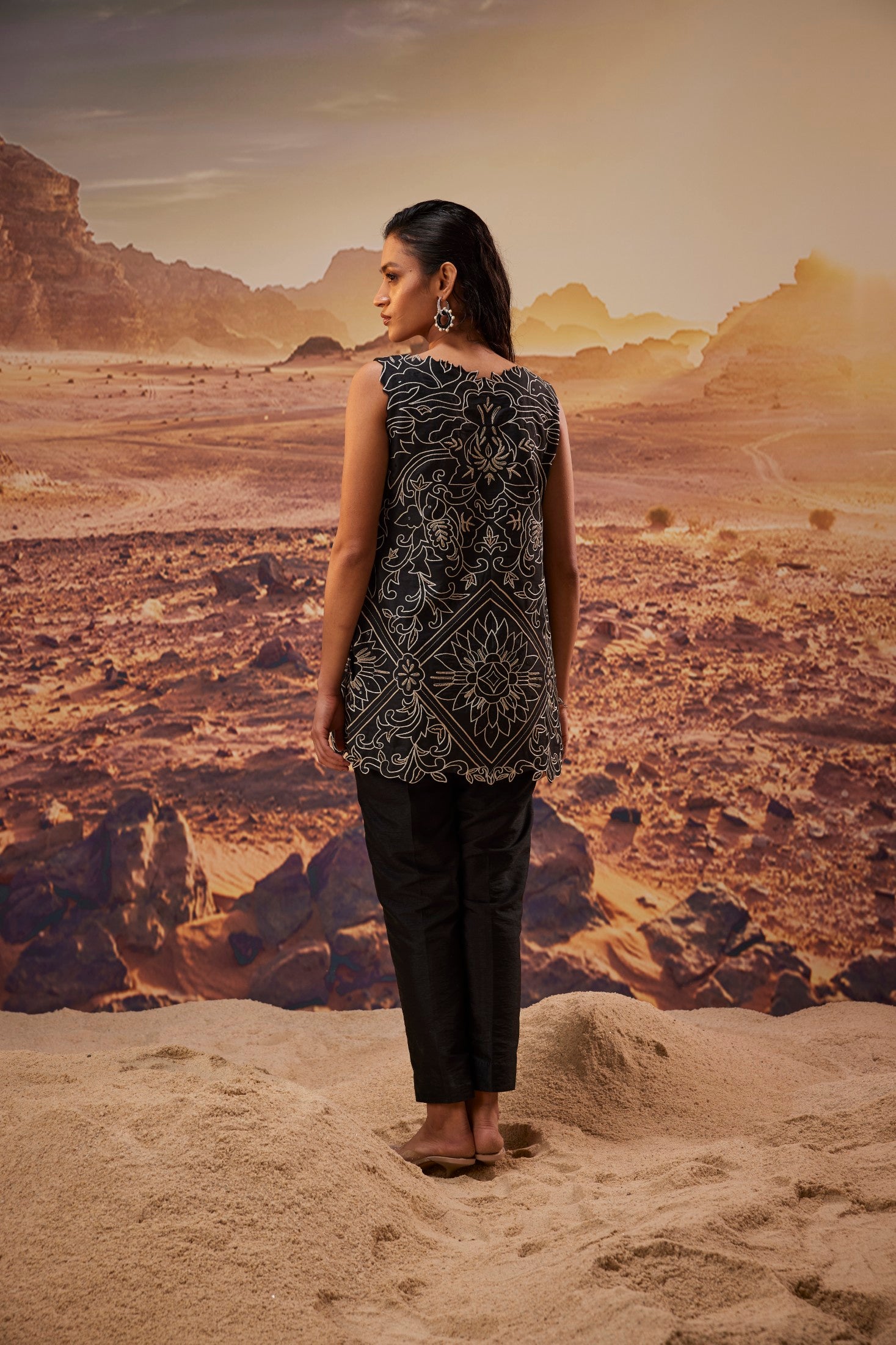 Black Short Kurta with Delicate Jaal Embroidery & Pants